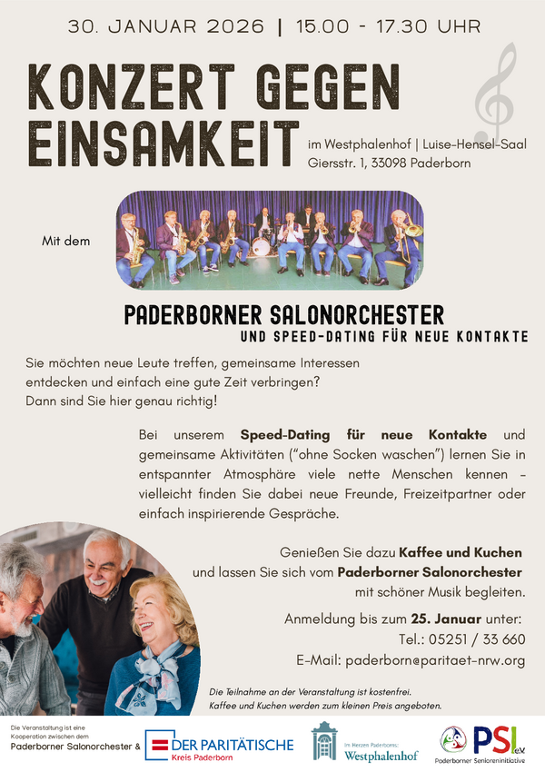 Die Veranstaltung ist eine Kooperation zwischen dem Paderborner Salonorchester, Der Paritätische Kreisgruppe Paderborn, dem Westphalenhof und der Paderborner Senioreninitiative.